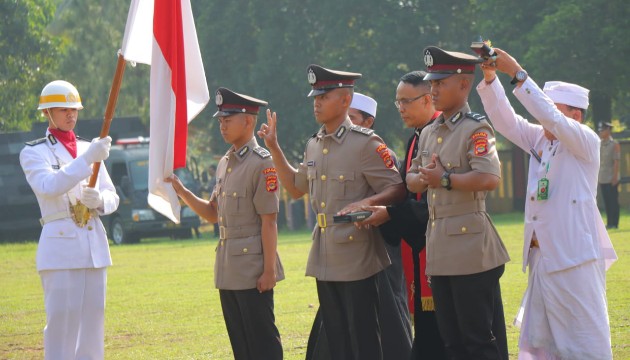 “saya harap kepada yang baru dilantik dapat mengimplemntasikan kemampuan pada saat menjalani pendidikan kemarin, jaga dan tingkatkan selalu keimanan dan ketakwaan kepada tuhan yang maha esa untuk menjadi pedoman kalian saat menjalankan tugas, selalu pegang teguh nila-nilai Tribrata dan Catur Prasetya” Tutup Ramadhan.(rls/san)