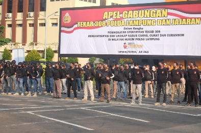 Bandar Lampung (HS) – Wakapolda Lampung Brigjen Pol Subiyanto Pimpin kegiatan apel gabungan Tekab 308 Polda Lampung dan Polres jajaran, Kamis (7/7/2022).