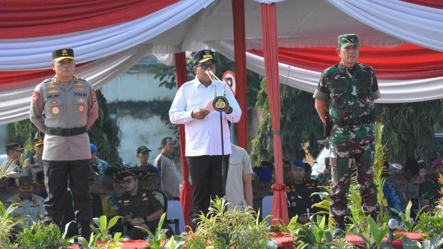 Bandar Lampung (HS) – Komandan Korem 043/Gatam Brigjen TNI Rikas Hidayatullah dan Kapolda Lampung Irjen Pol Helmy Santika, mengikuti Apel Gelar Pasukan Mantap Praja Krakatau 2024, yang dipimpin Pj. Gubernur Lampung Samsudin dan Komandan Apel AKBP Tri Hendro Prasetyo, bertempat di lapangan Buffer Area Pelabuhan Panjang, Jum’at (23/08/2024).