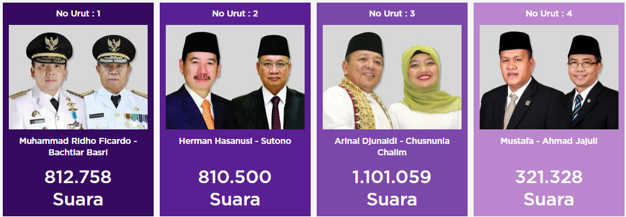 Berikut data quick count jumlah suara Pilgub Lampung dengan suara yang terkumpul 100%