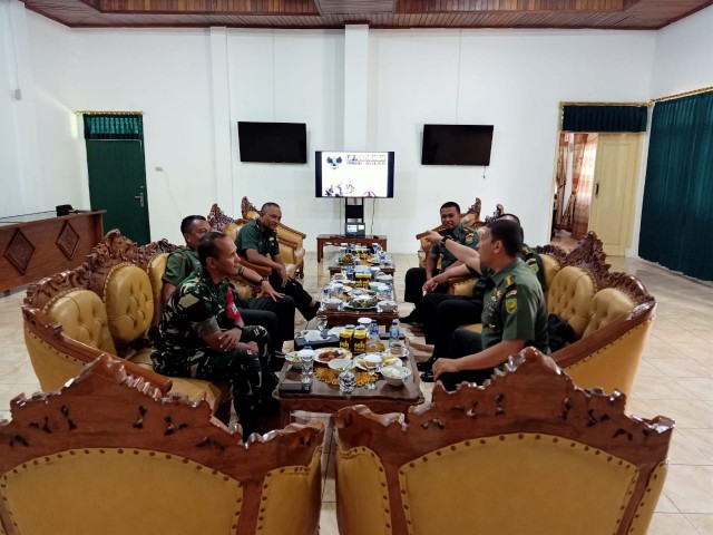 KOTABUMI (HS) – Rombongan Asisten Terirorial (Aster) II Komando Daerah Militer (Kodam) Sriwijaya, Kolonel Inf. Rionaldo, menyambangi Markas Komando Distrik Militer (Makodim) 0412 Lampung Utara, Senin (15/7/19).