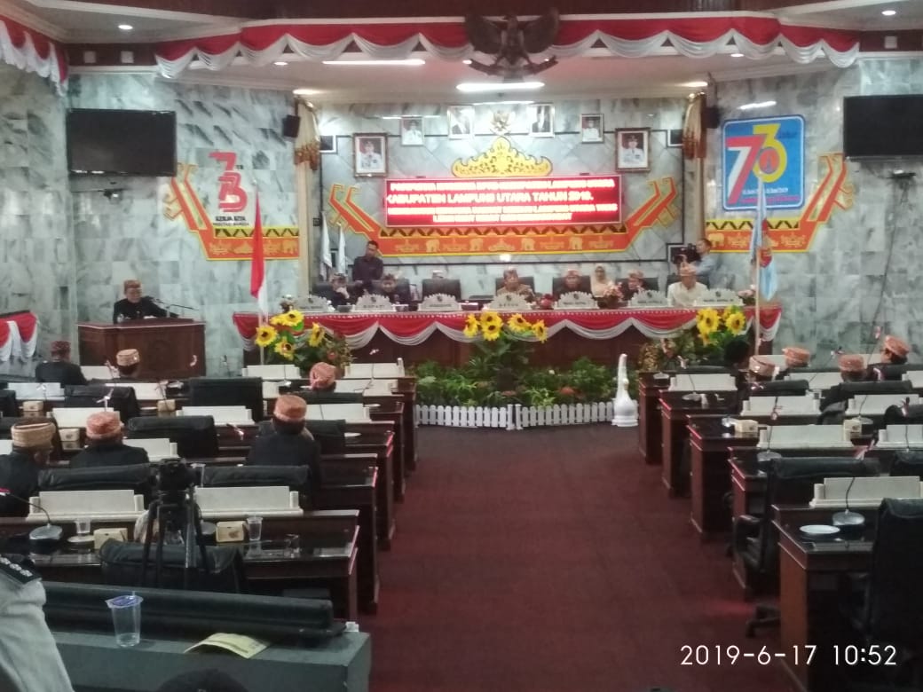 KOTABUMI (HS)– Sidang Paripurna Istimewa Peringatan Hari UlangTahun (HUT) Lampung Utara yang ke-73 Tahun 2019, adalah salah satu agenda yang sangat penting dilaksanakan. Senin (17/06/19)