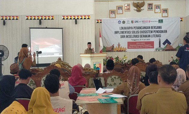 TANGGAMUS (HS) – Bunda Literasi Kabupaten Tanggamus, Dra. Hj. Siti Mahmudah Saleh Asnawi, M.Pd., menyampaikan pesan penting terkait penguatan gerakan literasi dalam Lokakarya Perancangan Bersama Implementasi Solusi Ekosistem Pendidikan dan Akselerasi Gerakan Literasi hari ini, Selasa (8/07/2025).