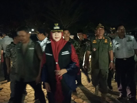 Bupati Tanggamus Dewi Handajani didampingi Ketua DPRD Heri Agus Setiawan, Kapten Inf Juliani Abri Danramil 424-03/KTA/Mewakili Dandim 0424/Tanggamus, Kompol Inderi Mewakili Kapolres Tanggamus, Muhaimin Staf Ahli Bupati, Suratman Kasat Pol PP, Herli Rahman Kadishub, Erlan Deni Saputra Camat Kota Agung