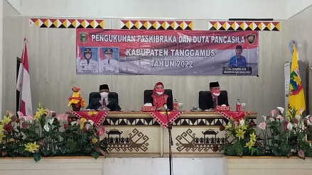 Tanggamus (HS) – Bupati Tanggamus Hj Dewi Handajani mengukuhkan Pasukan Pengibar Bendera Pusaka (PASKIBRAKA) Kabupaten Tanggamus Tahun 2022, Selasa (16/8/2022).