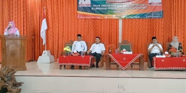 Tanggamus (HS) – Bupati Tanggamus Hj. Dewi Handajani, Melantik dan Mengambil Sumpah/Janji PNS Dalam Jabatan Fungsional Guru Pengangkatan Pertama Kali di Lingkungan Pemerintah Kabupaten Tanggamus, di GSG Gisting Bawah Kecamatan Gisting, Kamis (13/7/2023).