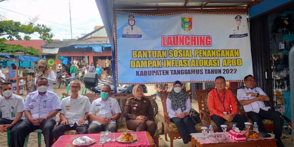 Tanggamus (HS) — Bupati Tanggamus Hj. Dewi Handajani, Melounching Bantuan Sosial Penanganan Dampak Inflasi Alokasi APBD Kabupaten Tanggamus Tahun 2022. Acara berlangsung di depan Pasar Gisting Kecamatan Gisting , Kamis (8/12/2022)
