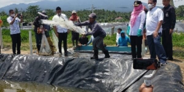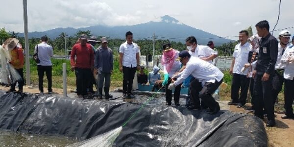 Tanggamus (HS) – Bupati Tanggamus, Meninjau Kegiatan Panen Raya Udang Vaname, di Sekolah Usaha Perikanan Menengah (SUPM) Negeri Kota Agung, Pekon Way Gelang, Kecamatan Kota Agung Barat, Rabu (14/09/2022).