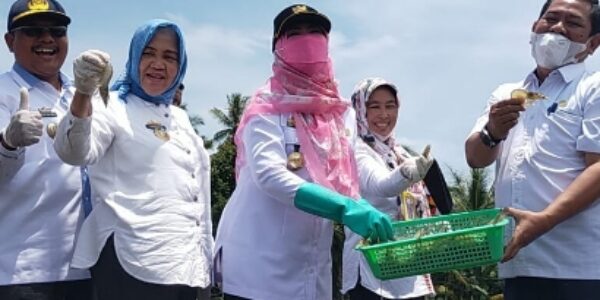 Bupati Dewi Handajani mengucapkan terima kasih telah menyambut baik kedatangan dirinya ingin melihat langsung hasil panen yang bagus dan memuaskan, serta agar budidaya udang Vaname dapat terus dikembangkan di Kabupaten Tanggamus.