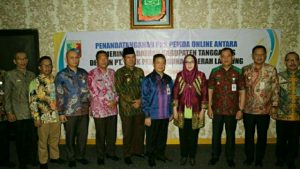 Kotaagung (HS),- Bertempat di kantor Bupati Tanggamus Bupati Tanggamus, Hj. Dewi Handajani dan Direktur Utama Bank Lampung Eria Desomsoni melakukan Penandatanganan Kerjasama Pembuatan Pemda Online antara Pemerintah Kabupaten Tanggamus dengan Bank Pembangunan Daerah Lampung, Kamis (4/10/2018).
