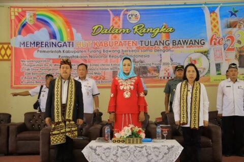 Menggala (HS) – Bupati Hj.Winarti dikukuhkan sebagai “Bunda Literasi” Kabupaten Tulang Baang, acara berlangsung di Gedung Serba G,una (GSG) Menggala, Rabu (04/03/2020).