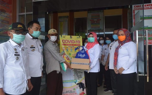 Bantuan diberikan secara langsung melalui perwakilan keluarga di Puskesmas Rawat Inap Pasar Simpang, Kecamatan Kota Agung Timur, Rabu(08/04/2020).