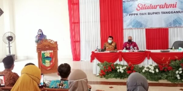 Tanggamus (HS) – Bupati Tanggamus Hj Dewi Handajani, menghadiri silahturahmi Forum Persatuan PPPK dengan Pemerintah Kabupaten Tanggamus sekaligus tasyakuran atas penerimaan Surat Keputusan (SK) PPPK Tahun 2021, untuk seluruh dewan guru PPPK di Kabupaten Tanggamus rekrutan Tahun 2021. Di Gedung Islamic Center Kota Agung, Jum’at (14/10/2022).