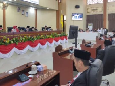 Tanggamus (HS) – Bupati Tanggamus Hj. Dewi Handajani bersama Wakil Bupati AM. Syafi’i, Forkopimda, Anggota DPRD, dan Sekdakab beserta Jajaran Asisten, OPD, dan Para Camat mengikuti Rapat Paripurna Istimewa Mendengarkan Pidato Kenegaraan Presiden RI Dalam Rangka Memperingati HUT Kemerdekaan RI ke 77 Tahun 2022.