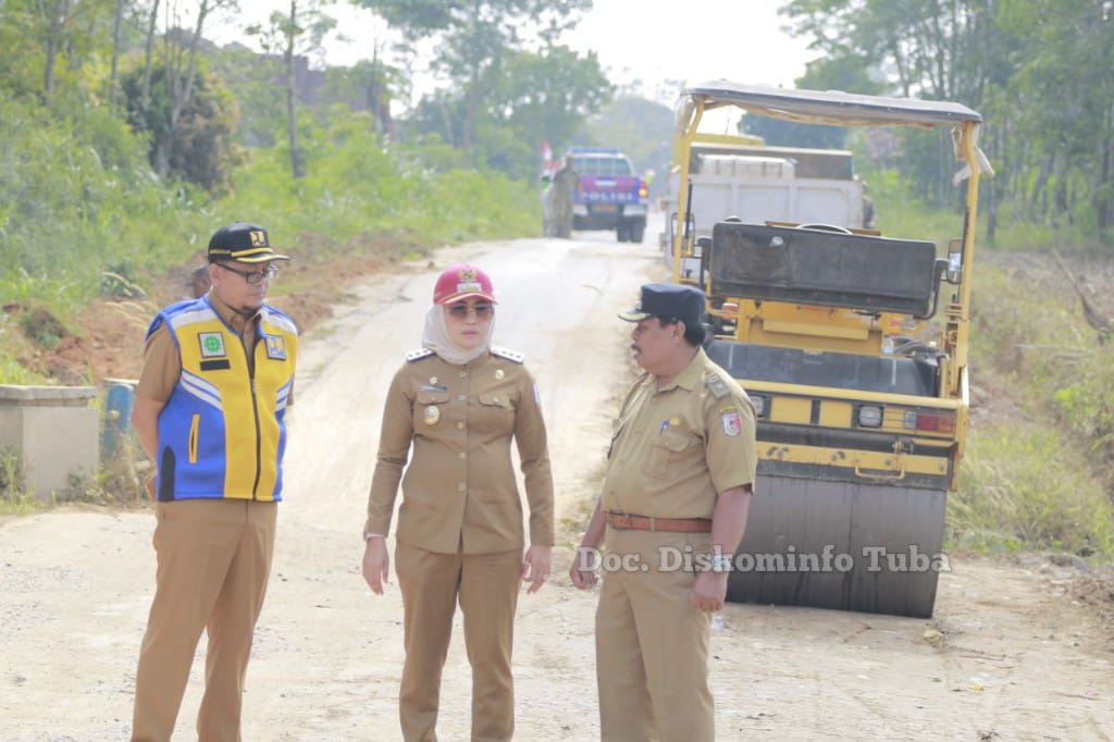 Tulang Bawang (HS) – Untuk memastikan Kualitas Pengerjaan, Bupati Tulang Bawang Hj Winarti Tinjau Perbaikan Jalan Tegamoan, akses menuju pintu Tol Lambu Kibang dari jalan lintas Timur Banjar Baru Tulang bawang, Senin (8/8/2022).