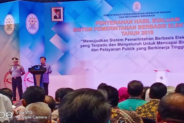 Penyerahan hasil evaluasi SPBE dilakukan oleh Wakil Presiden RI Jusuf Kalla, Acara ini dihadiri para Menteri Kabinet Kerja, Kepala Badan, Kepala Lembaga, Kepala Daerah, Wakapolri dan para Kapolda.