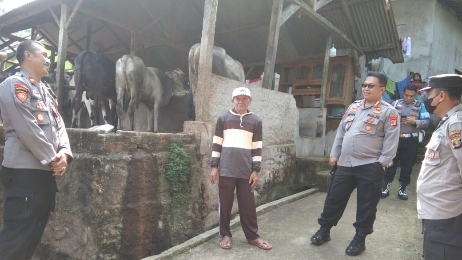Bandar Lampung (HS) – Direktur Binmas Polda Lampung Kombes Pol Anang Triarsono, sambangi salah satu peternak Sapi Misngat di desa Ganjaran Kecamatan Pagelaran Kabupaten Pringsewu, Kamis (7/7/2022).