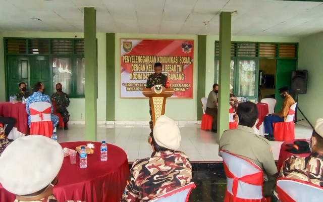 Dalam sambutannya, Dandim mengatakan jika kegiatan komsos dengan keluarga besar TNI merupakan sebuah kegiatan di bidang Teritorial yang harus dilaksanakan terus menerus agar memperoleh kesamaan visi dan misi serta interprestasi antar segenap komponen bangsa khususnya KBT.