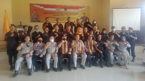 Pesawaran (HS) – Ketua Keluarga Besar Putra Putri Polri (KB-PPPOLRI) Provinsi Lampung Dr. Fauzi, melantik dan mengukuhkan Deni Wijaya sebagai ketua KB-PPPOLRI Resor Pesawaran di Aula Pamor Persada Polres Pesawaran, Senin (20/6/2022).