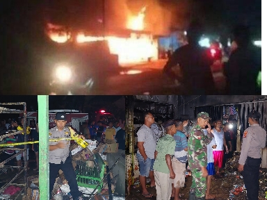 Kapolsek menyatakan terbakarnya toko sembako diduga berasal dari meteran listrik lalu menyebar dan membakar sebagian bangunan yang berisi barang dagangan: makanan ringan kemasan plastik, kardus dan barang mudah terbakar lainya.