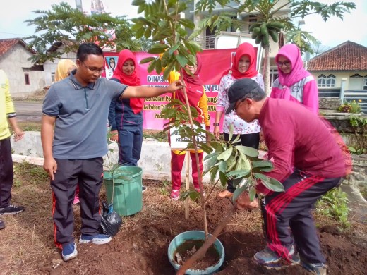 Penanaman Pohon sebanyak kurang lebih lebih 2000 batang dilaksanakan di seluruh UPTD Puskesmas sebagai wujud mengimplementasikan Progran aksi 55 desa Bupati Hj. Dewi Handajani dan Wakil Bupati Hi. AM. Syafi’i.