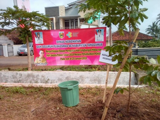 Kotaagung (HS), Jajaran Dinas Kesehatan Kabupaten Tanggamus dan seluruh UPTD Puskesmas, dalam rangka mewujudkan lingkungan sehat dan memperingati hari lingkungan hidup, melakukan Penanaman Pohon serentak , Jum’at ( 25/1/2019 ).