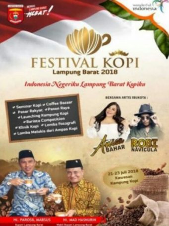 Liwa, Lampung Barat (HS) – Festival Kopi Lampung Barat akan dilaksanakan selama 3 hari dari tanggal 21 s.d 23 Juli 2018 dan akan dimeriahkan oleh Artis ibukota Anisa Bahar.