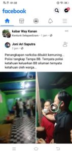 Video tersebut pertama kali diunggah akun Joni Ari Saputra di media sosial Facebook pada Senin malam. (26/7/2021). Penangkapan tersebut dipimpin langsung oelah Kasat Narkoba IPTU Aris Sujatmiko.