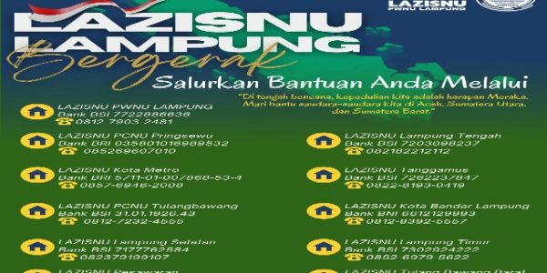 “Insya Allah seluruh donasi yang terhimpun akan segera ditasarufkan kepada masyarakat terdampak bencana sebagai bentuk komitmen LAZISNU untuk terus hadir memberikan manfaat, kemaslahatan, dan memperkuat solidaritas kemanusiaan,” tambahnya.