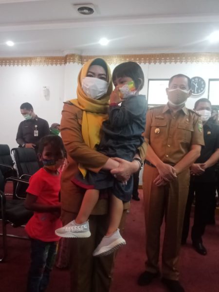 Pada kesempatan tersebut, Bupati, Wabup dan jajaran Forkopimda memberikan santunan kepada anak yatim. (*/Adv).