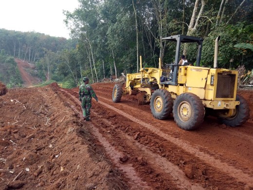 “ Dibantu masyarakat dalam kegiatan pra TMMD ini kami terus melakukan penggalian, Menumbangkan pohon-pohon yang terkena badan jalan, penggelederan dan pembentukan jalan,” kata Sugiono.