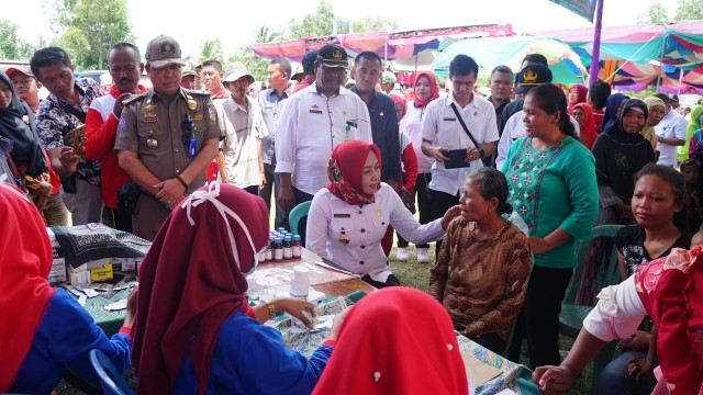Tulangbawang (HS) ,- Menjelang Hari Ulang Tahun (Hut) Ke-22 Kabupaten Tulangbawang, Bupati Hj. Winarti melakukan kunjungan kerja sekaligus melaksanakan Bakti Sosial di Kecamatan Dente Teladas Tulangbawang, Rabu (13/02/2019).