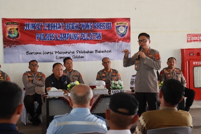 “polri sebagai pelindung, pengayom, pelayan dan penegakan hukum masyarakat, jika ada kekurangan bisa disampaikan dan diinformasikan masukan – masukan dalam jumat curhat kali ini,” buka Kapolres Lampung Selatan AKBP Edwin saat memimpin jumat curhat di Pelabuhan Bakauheni.