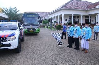 Kafilah MTQ Kabupaten Lampung Utara dilepas langsung oleh Bupati Lampung Utara H. Budi Utomo, S.E., M.M., dari Rumah Jabatan Bupati, Kamis (25/11/2011).