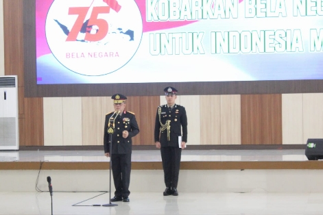 Lampung Selatan (HS) – Dengan mengusung tema “Kobarkan Bela Negara untuk Indonesia Maju” Kapolda Lampung Irjen Pol Helmy Santika memimpin langsung Upacara Peringatan Hari Bela Negara ke- 75 Tahun 2023 di GSG Presisi Polda Lampung, Selasa (19/12/23).
