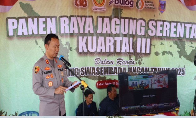 Kapolres Lahat AKBP Novi Edyanto SIK. MIK, menghadiri kegiatan Panen Raya Jagung Serentak Triwulan III Tahun 2025 yang digelar secara virtual melalui aplikasi Zoom, bertempat di desa Pandan Arang Ilir Kecamatan Tanjung Tebat, Sabtu (27/09/2025).