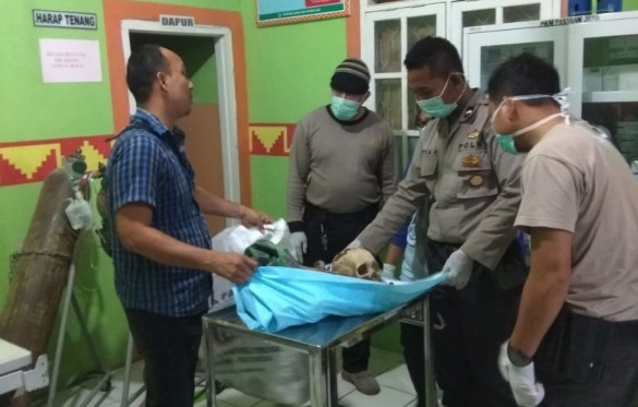 Petugas kami bersama para saksi langsung berangkat menuju ke TKP dan setelah sampai di TKP benar ditemukan tengkorak dan kerangka manusia. Lalu dilakukan olah TKP dan disana petugas kami kembali menemukan beberapa potongan tulang manusia yang tercecer di sekitar TKP.