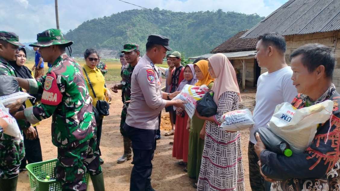 Kapolsek Pulau Panggung dan Danramil Salurkan Bantuan Sembako ke Masyarakat Terdampak Banjir di Pekon Gunungtiga