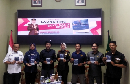 Peluncuran buku saku dihadiri oleh Kepala Kesbangpol Pesawaran Zainal Arifin, Ketua KPU Yatin Putro Sugino, Ketua Bawaslu Ryan Arnando, Kasat Reskrim AKP Supriyanto Husin, Ketua PWI Pesawaran M Ismail serta perwakilan DPRD Pesawaran Saptoni. (Eka)