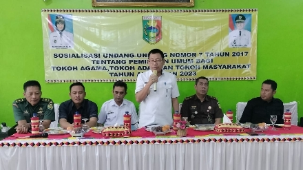 Tanggamus (HS) – Kesbangpol Kabupaten Tanggamus melaksanakan kegiatan Sosialisasi undang-undang nomor 7 Tahun 2017, Tentang pemilihan umum bagi Tokoh Agama, Tokoh Adat, Tokoh Masyarakat, Tahun Anggaran 2023, di RM Savana Kota Agung, Rabu (26/07/2023).