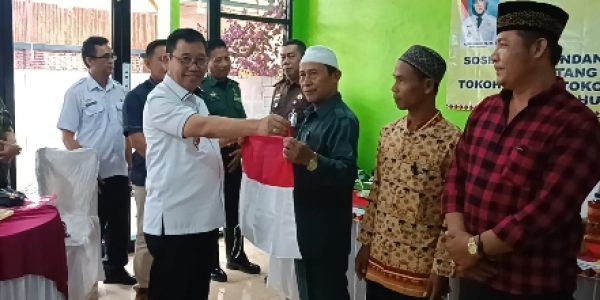 Kegiatan berlanjut dengan Penyerahan Bendera Merah Putih secara simbolis kepada para tokoh dan berlanjut dengan memberikan materinya tentang Sosialisasi undang-undang nomor 7 Tahun 2027. (*)