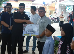 Pada sesi akhir Safari Ramadhan Ketua DPRD memberikan santuan berikut bantuan kepada Masjid Nurus Sholihin, Metro Pusat.