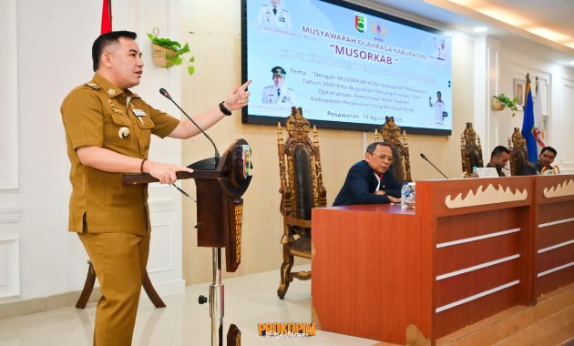 PESAWARAN (HS) – Komite Olahraga Nasional Indonesia (KONI) Kabupaten Pesawaran menggelar Musyawarah Olahraga Kabupaten (Musorkab) di Aula Pemkab Pesawaran, Selasa (19/8/2025).