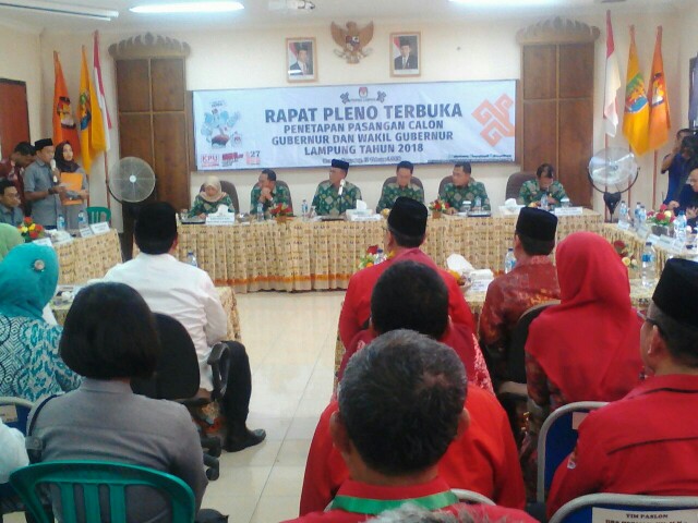 di ajang pilgub 27 Juni 2018 mendatang. Penetapan tersebut dilakukan pada Rapat Pleno Terbuka di Kantor KPU Lampung, Senin (12/2). Penetapan dituangkan dalam