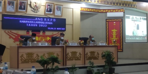 Kotabumi (HS) – Pemerintah Kabupaten Lampung Utara menggelar Musyawarah Perencanaan Pembangunan (Musrenbang) Rencana Kerja Pembangunan Daerah (RKPD) Tahun 2022 di Aula Tapis setempat, secara virtual dengan memanfaatkan aplikasi Zoom Cloud Meeting.Selasa (23/03/22).