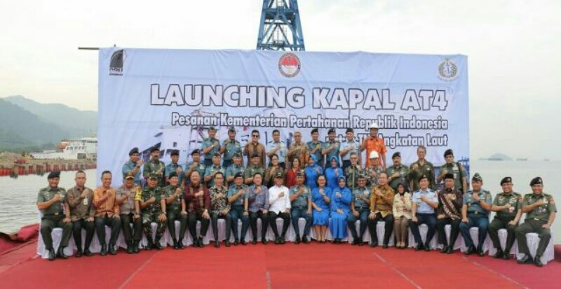 Bandar Lampung – Menteri Pertahanan RepubIik Indonesia (Menhan RI) Ryamizard Ryacudu dengan didampingi Kepala Staf TNI Angkatan Laut, Laksamana TNI Siwi Sukma Adji melaunching Kapal Angkut Tank AT-4 di Galangan PT. Daya Radar Utama (DRU), Panjang, Kamis (28/6/2018).