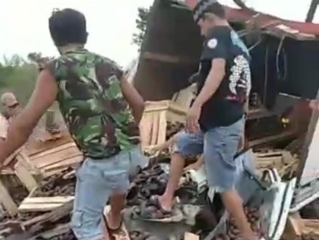 Dalam video yang didapat, muatan truk tersebut berceceran ke jalan. Ngerinya lagi, truk tersebut tampak hancur bahkan bak truk lepas ke depan dan terlihat seorang pria terjepit di dalam truk tersebut.
