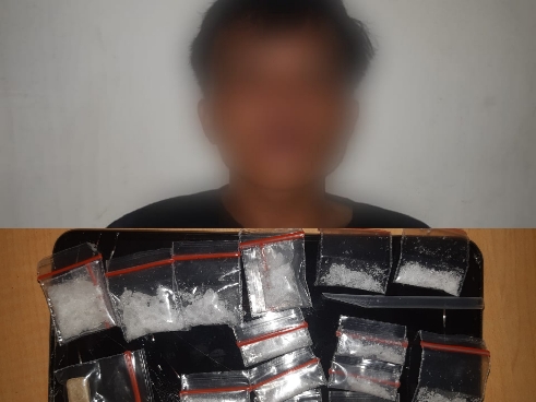 “Saat ditangkap, petugas mendapati 1 paket kecil sabu berada di genggaman tangan pelaku, sedangkan 13 paket sabu lainnya dan pil extacy ditemukan di saku celana milik pelaku” jelas Kompol Gigih.