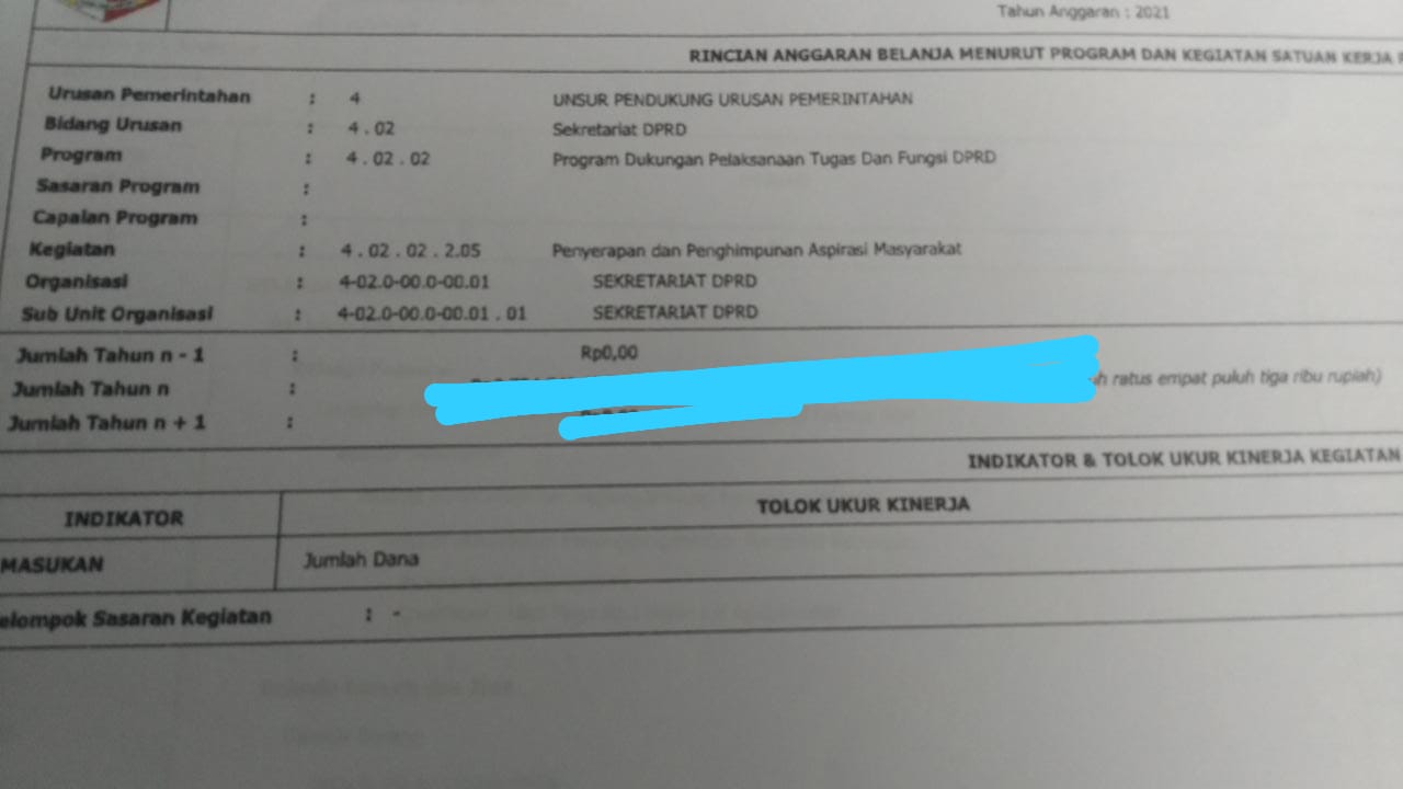 Hal ini sangat nampak dari beberapa rincian dana kegiatan dan belanja barang khususnya anggaran sewa sound sistem dan belanja makan minum (Snack) yang nilainya begitu fantastis.