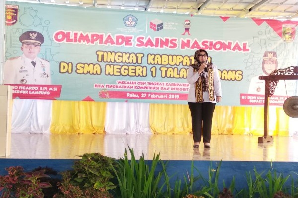 Tanggamus (HS) – Bupati Tanggamus Dewi Handajani membuka Olimpiade Sains Nasional (OSN) jenjang Sekolah Menengah Atas (SMA) tingkat Kabupaten tahun 2019. Acara di gelar di SMA Negeri 1 Talangpadang. Rabu (27/2/19).